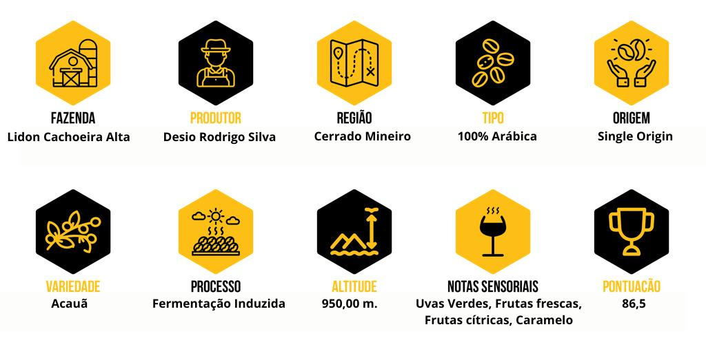 Um Cafézão do Cerrado Mineiro, uma das principais regiões de Cafés do Brasil, com selo de Denominação de Origem. Café com notas sensoriais Uva Verde, Frutas frescas, Frutas Cítricas, Caramelo, Corpo cremoso e licoroso, Acidez cítrica. Geralmente é o café que servimos em nosso Espresso, com acidez e doçura equilibrada.